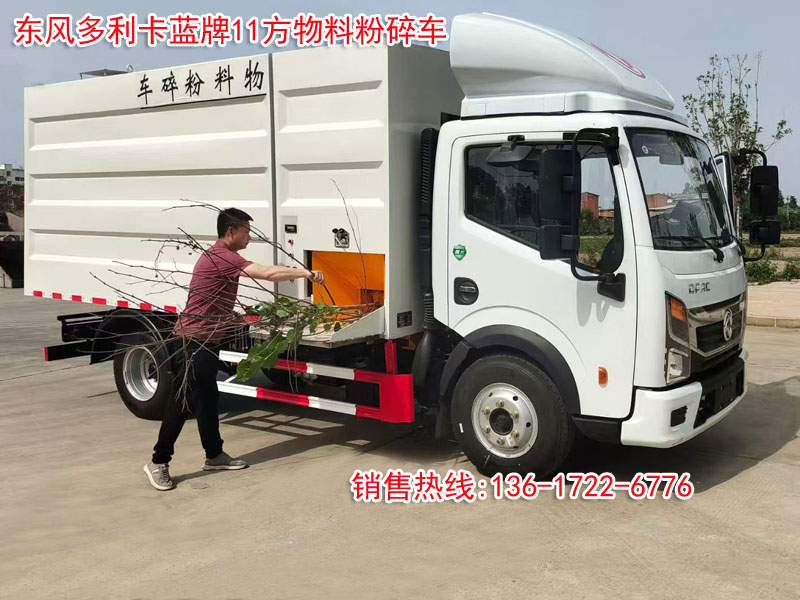 二、东风多利卡11方蓝牌物料粉碎车整车外观、内饰图片: